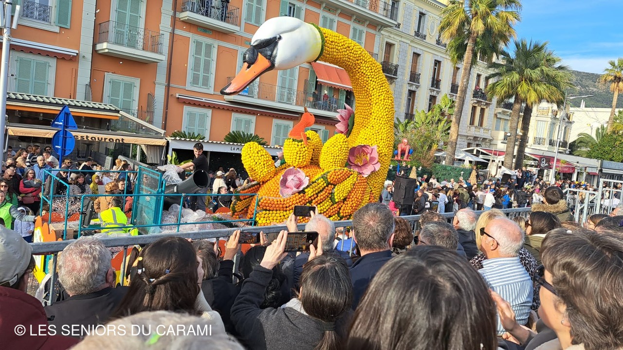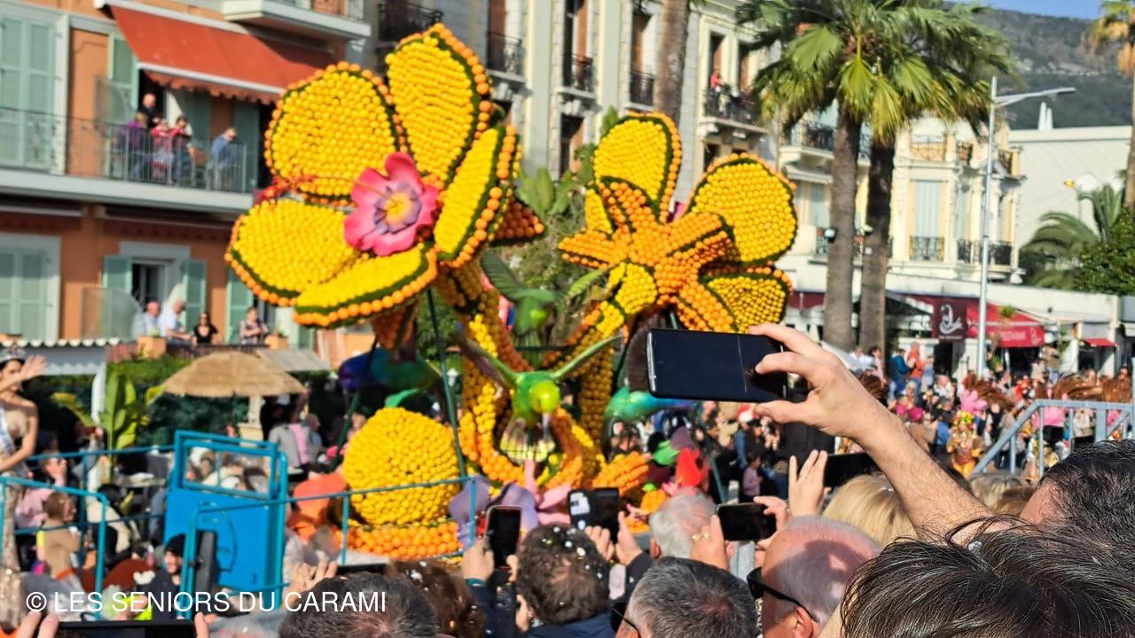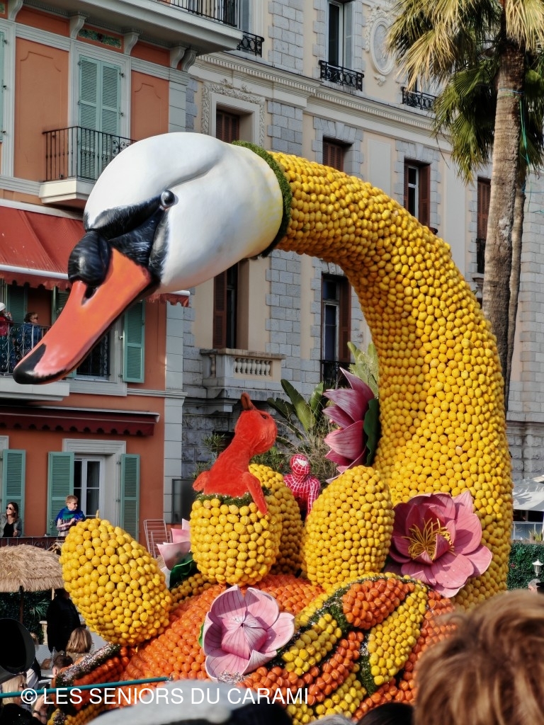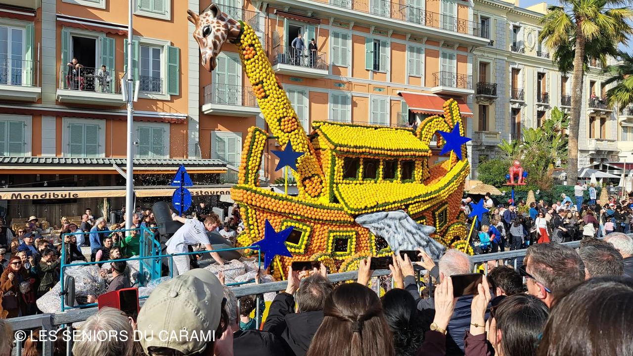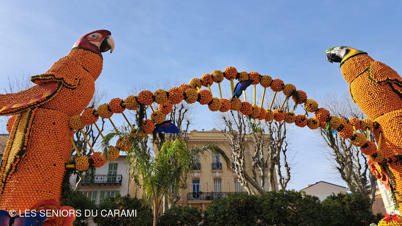 Matinée et déjeuner libres : les jardins avec les expositions de motifs d'agrumes, puis à 14h30Le Corso des fruits d'or en place assise en tribune et sur le retour arrêts chez Fragonard!
